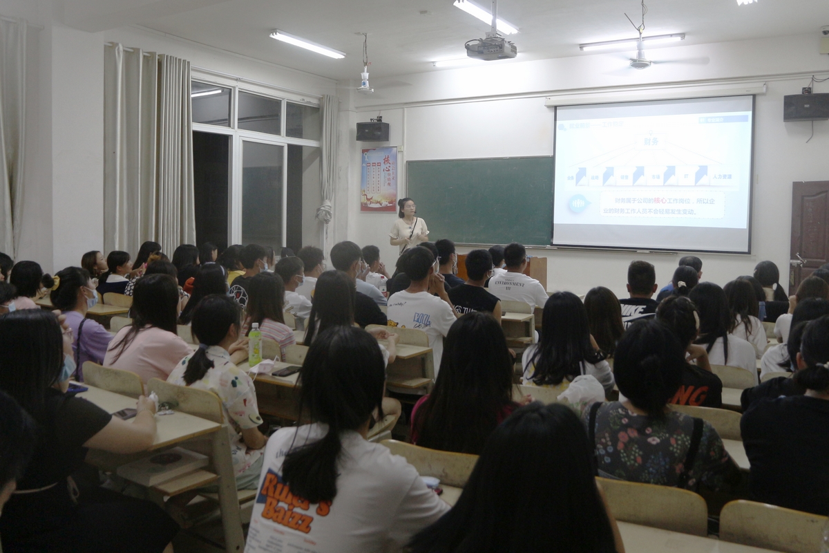 为了进一步提高财务管理2021级新生对本专业的办学特色、专业优势的认识,牢固树立广大新生对大数据与财务管理专业人才培养的信心,使同学们明确专业学习目标,更好的规划自己三年老员工涯,为以后走上工作岗位打下坚实基础。教研室主任邵珊在文A403主持了对2021级大数据与财务管理新生进行专业认知教育活动。