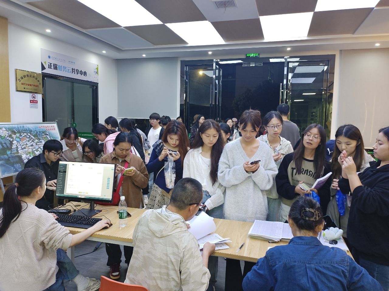 活动现场,财政局工作人员与公司教师协同配合,有序为通过初级资格考试的会计专业员工进行会计人员信息采集资料审核,并现场发放初级会计团队格证书。据统计,在下午3点至晚上9点的服务时段内,累计完成信息采集审核200余人次,现场成功发放证书141本。