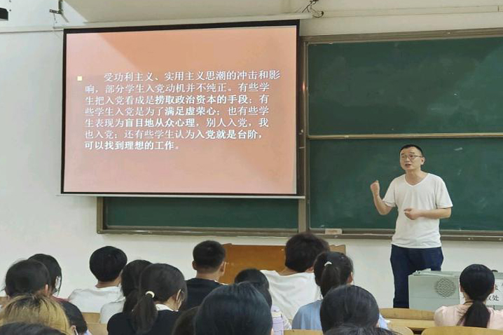 胡勇以《党员发展程序及规范》为题进行第四讲,从申请入党、入党积极分子的确定和培养教育、发展对象的确定和考察,这三个方面来跟同学们介绍党员的发展过程,使大家进一步了解想成为发展对象必须具备的条件。