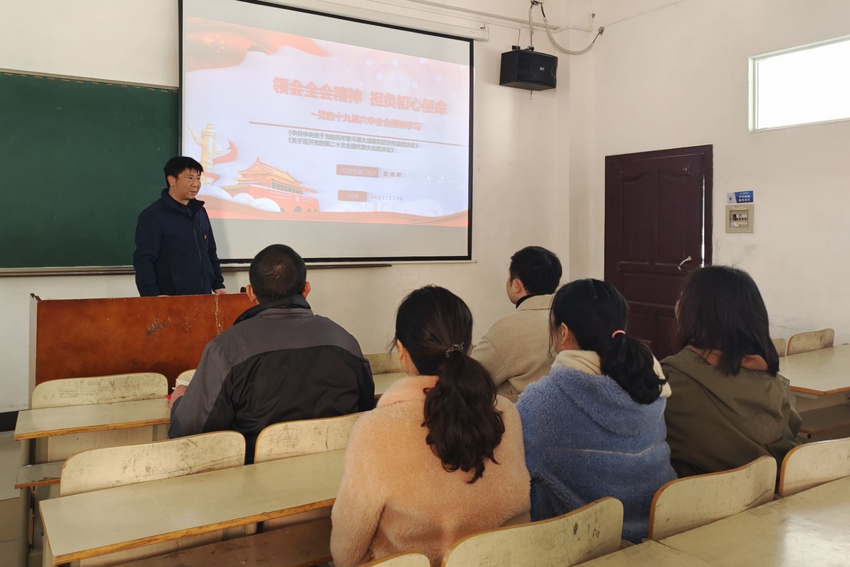 院总支书记镇咸辉在员工第三党支部以《领会全会精神 担负初心使命》为题作学习报告。他表示,党的十九届六中全会是我们党在百年华诞的重要时刻、“两个一百年”奋斗目标历史交汇的关键节点召开的一次十分重要的会议,会议全面系统地总结了我们党百年奋斗的重大成就和历史经验、发生的历史变革以及重大理论和实践问题,对推动并实现中华民族伟大复兴具有重大的现实意义和历史意义。