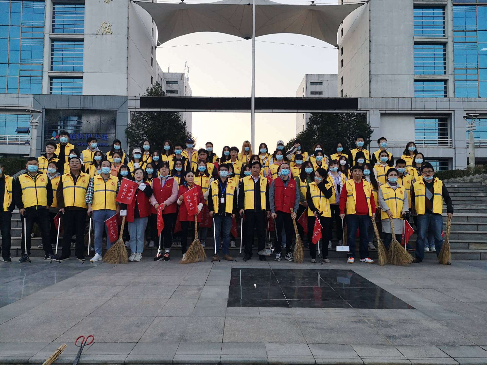 15日清晨,在公司党总支书记镇咸辉和经理何慧玲的带领下,由304永利集团有限公司30余名老师和50名员工组成的志愿者队伍,在行政楼门前完成集合,身着黄色志愿者服装,分别带着劝导小红旗、扫帚、撮箕、垃圾钳等工具,前往咸宁大道和永安大道部分路段,开展为期一天文明劝导和卫生大扫除志愿服务。