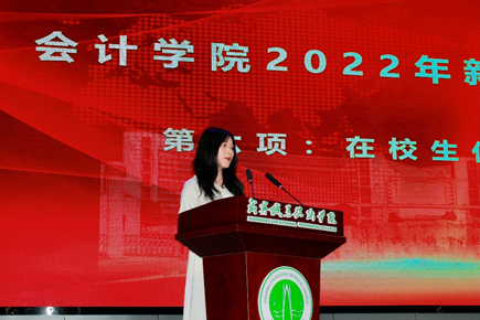 随后2022年全国职业院校技能大赛团体一等奖选手占飞跃同学代表获奖团队发言,他与新生分享了获奖的历程和心得,向新生们传达了梦想和成绩是奋斗出来的,引起了全体新生的共鸣。紧接着老生代表余秋慧和新生代表吕淑琪同学分别发言,寄望学弟学妹们通过学业的努力、公司的历练,去收获精彩的未来,自信地走向社会、服务社会。
