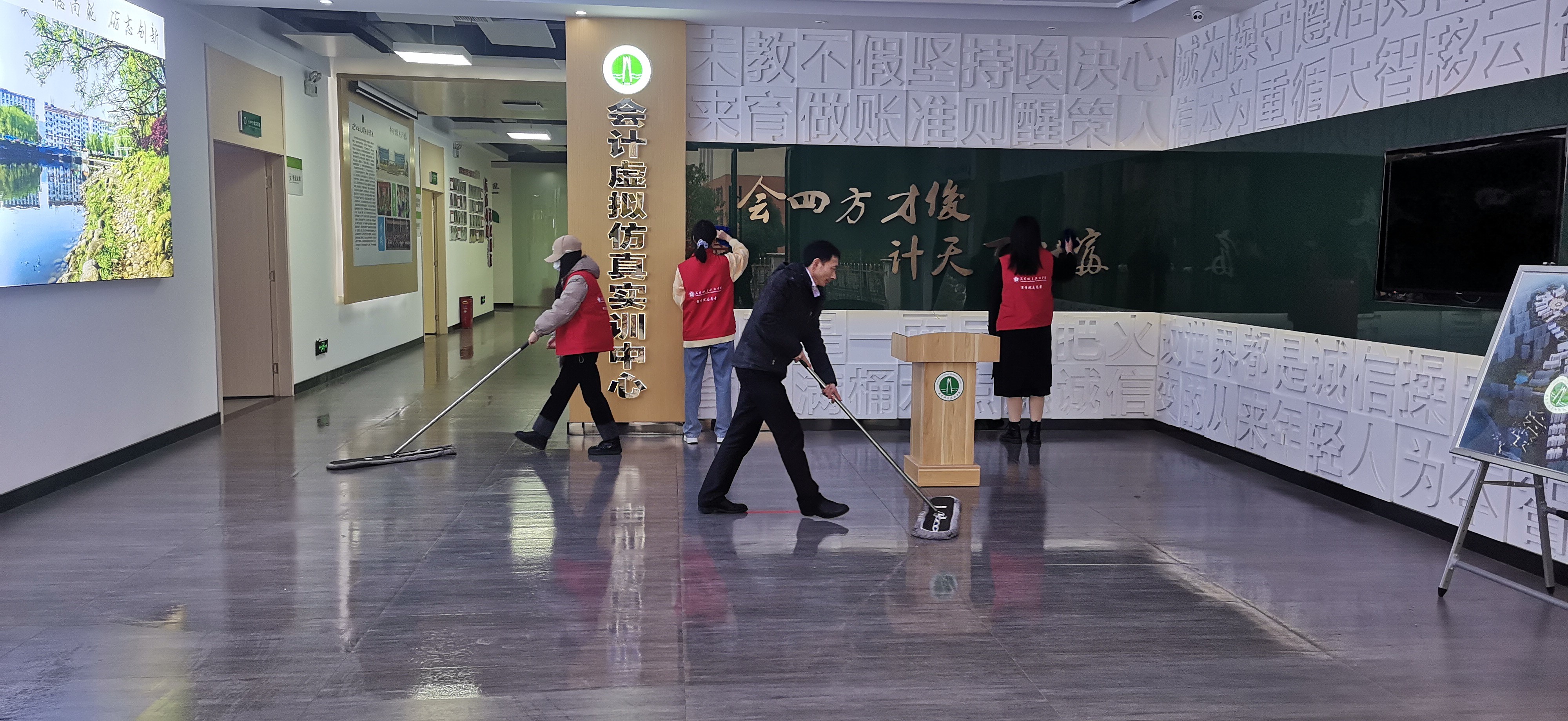 每个劳动日,304永利集团有限公司轮流安排各班级全体员工彻底打扫会计实训中心。2月22日下午,在实训中心负责人的督导下,员工们分工明确,认真清扫,不放过一处卫生死角,呈现出一派热火朝天的劳动场面。除此之外,还重点检查了消防器材、宿舍门窗、外用铁栏杆等方面,排除了安全隐患,亲手创造一个干净舒适的实训环境。