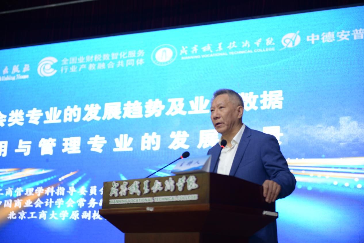 在主题报告环节,中国商业会计学会常务副会长谢志华教授发表了题为“财会类专业发展趋势与业财数据应用前景”的主旨演讲。他指出:“未来的财经教育必须从静态知识传授转向动态能力培养,以认知、挑战和创新为核心,培养能够适应数字化转型的复合型人才。”
