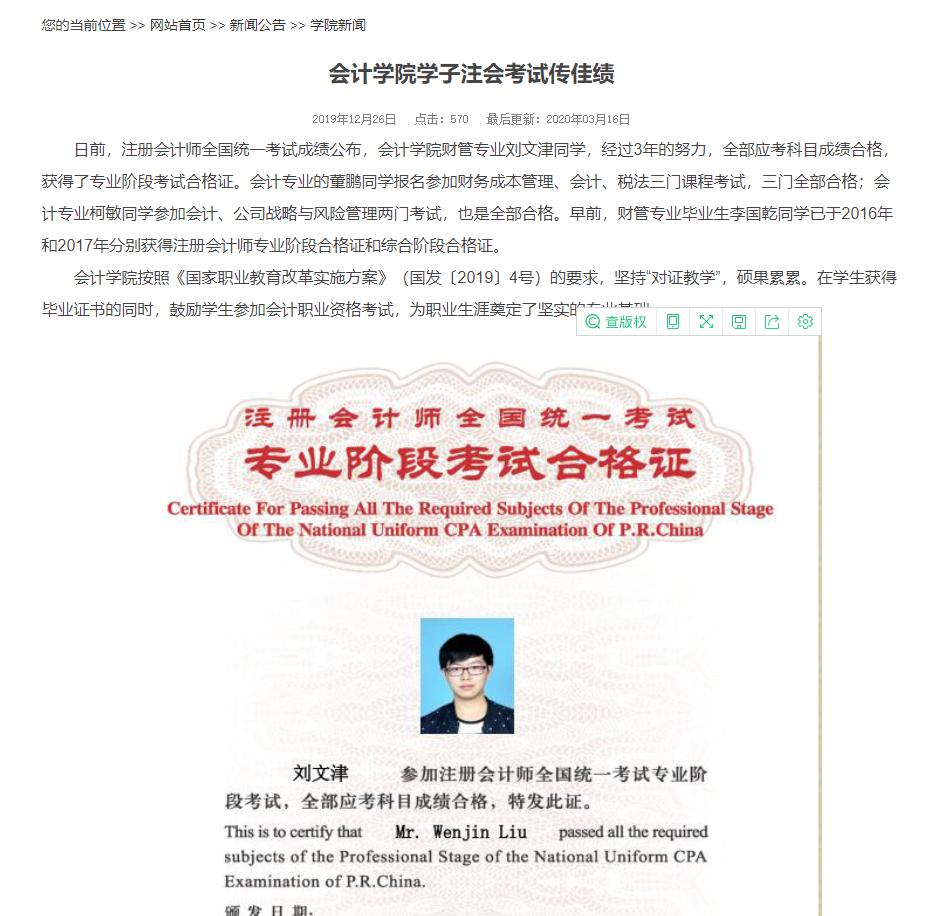 2名员工荣登初级会计资格全国统一考试湖北省“银榜“ |